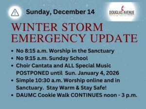 For more information, contact the church office at (217) 546-4631 or daumc@douglasavenue.org